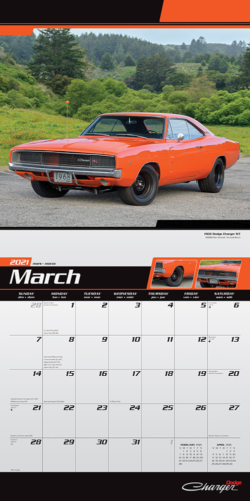 Dodge Charger 2021 12 x 12 Inch Monthly Square Wall Calendar with Foil Stamped Cover by Plato, American Muscle Motor Car