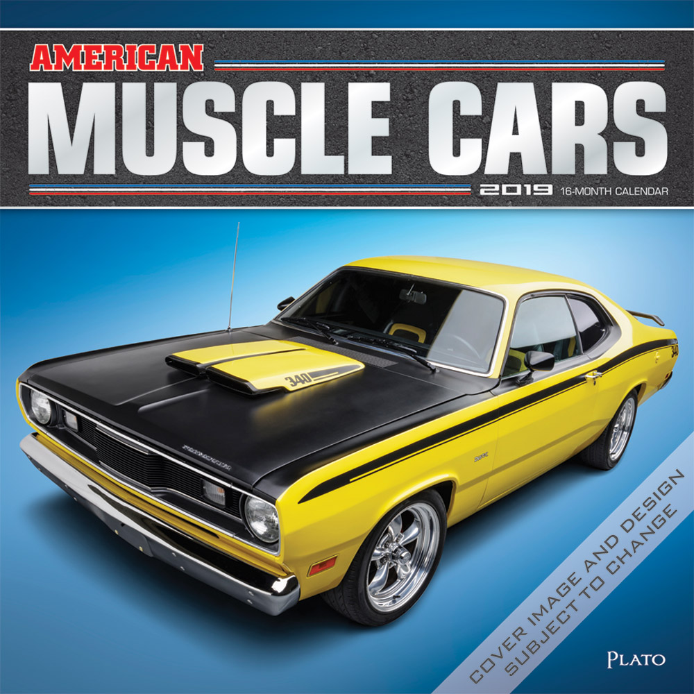 American Muscle Cars 2019 12 x 12 Inch Monthly Square Wall Calendar with Foil Stamped Cover by Plato, USA Motor Ford Chevrolet Chrysler Oldsmobile Pontiac
