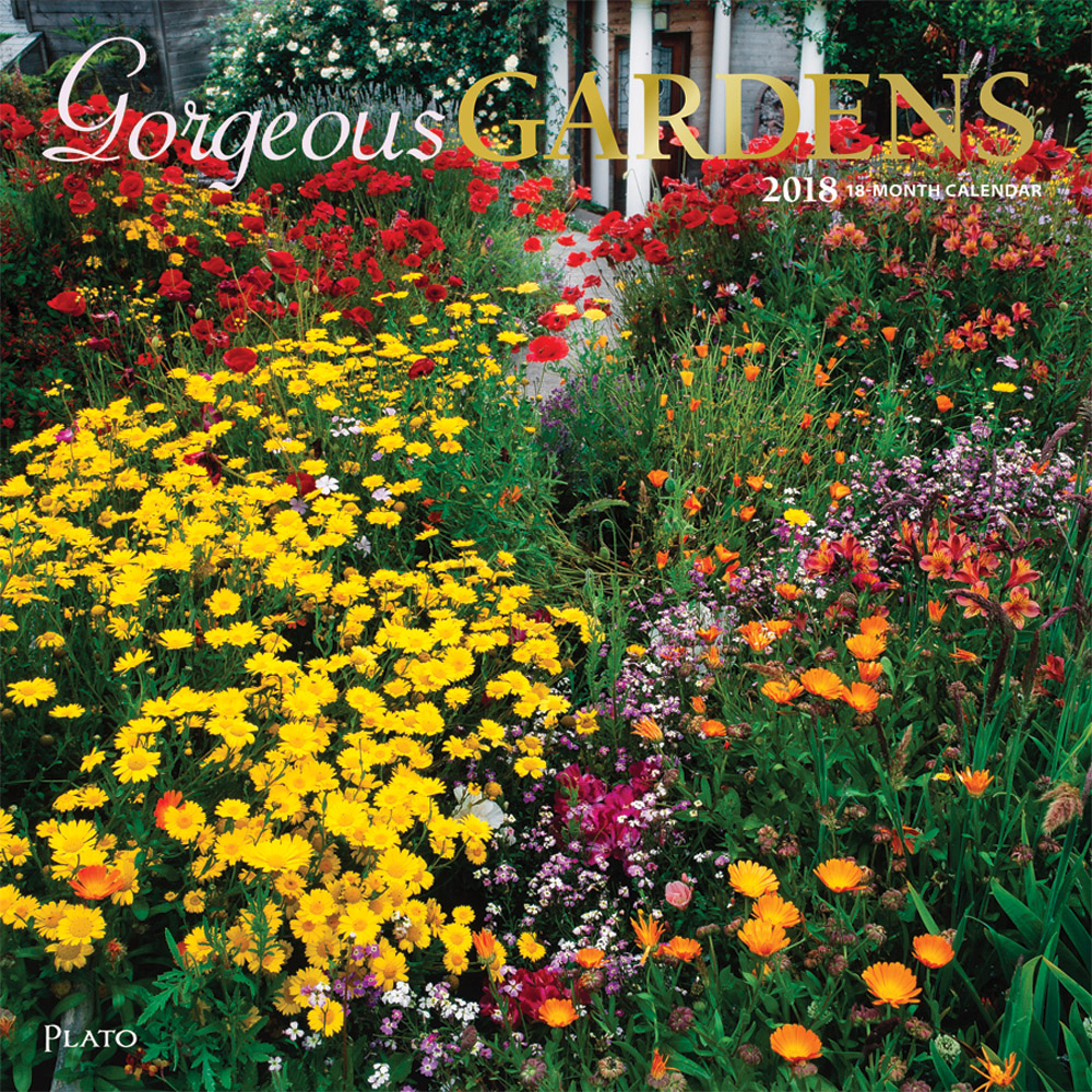 Gorgeous Gardens 2018 Square Wall Calendar Front Cover – Plato Calendars All Rights Reserved
