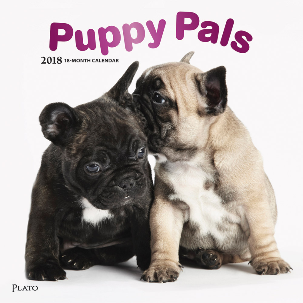 Puppy Pals 2018 Square Wall Calendar Front Cover – Plato Calendars All Rights Reserved