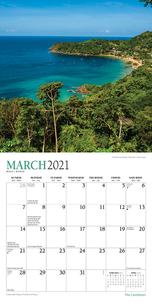 The Caribbean 2021 7 x 7 Inch Monthly Mini Wall Calendar with Foil Stamped Cover by Plato, Travel Nature Beach Tropical