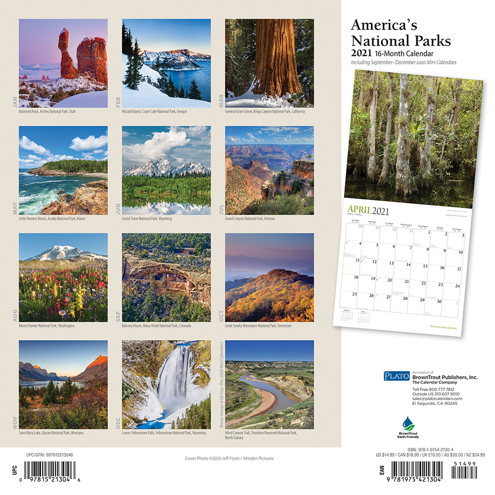 America’s National Parks 2021 12 x 12 Inch Monthly Square Wall Calendar with Foil Stamped Cover by Plato, Yosemite Yellowstone