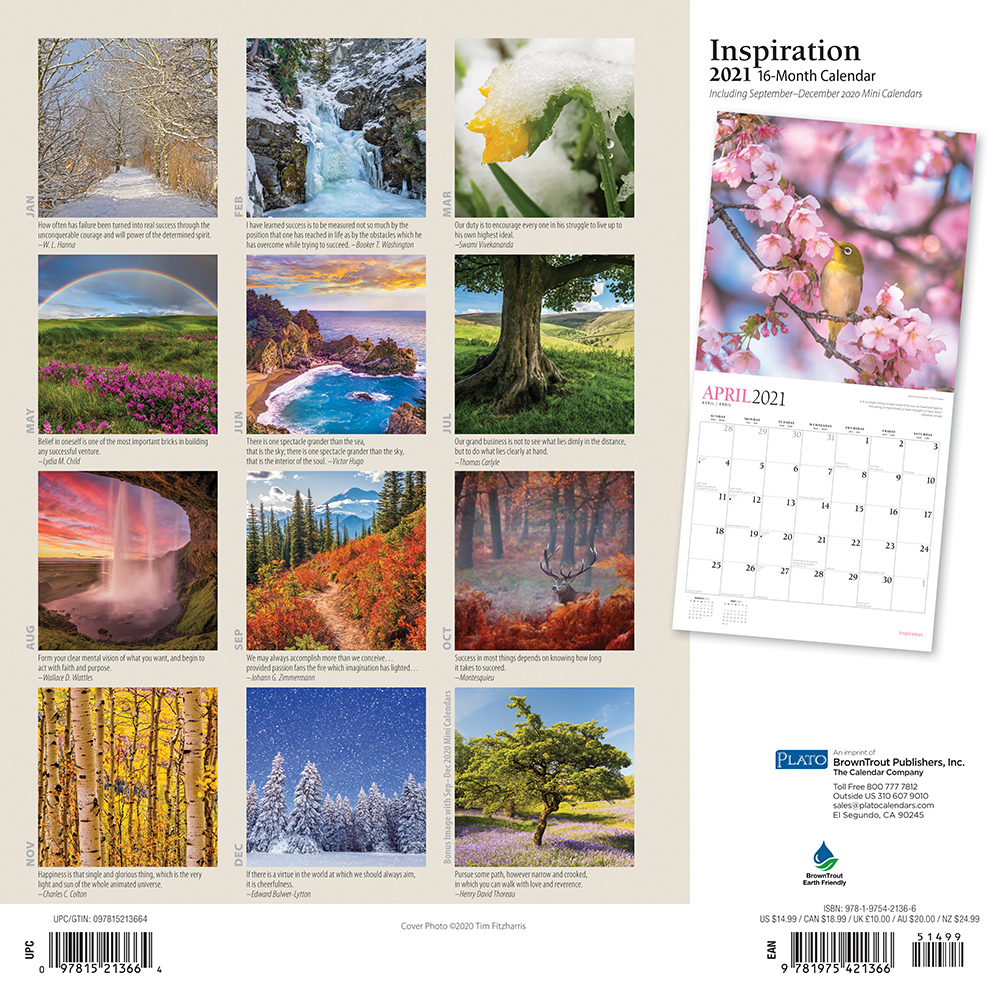 Inspiration 2021 12 x 12 Inch Monthly Square Wall Calendar with Foil Stamped Cover by Plato, Inspiration Motivation Quotes