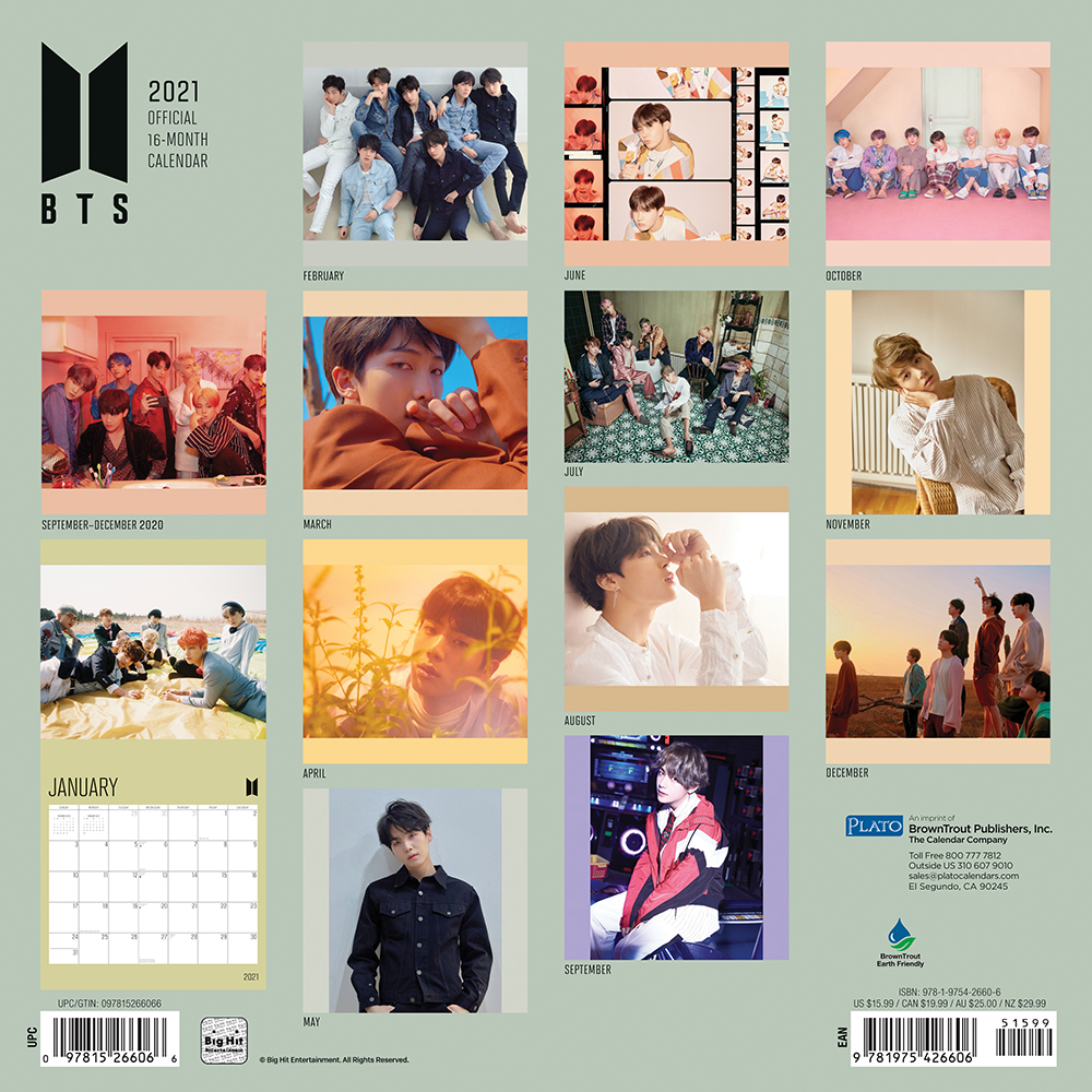 BTS OFFICIAL 2021 12 x 12 Inch Monthly Square Wall Calendar by Plato with Foil Stamped Cover, K-Pop Bangtan Boys Music
