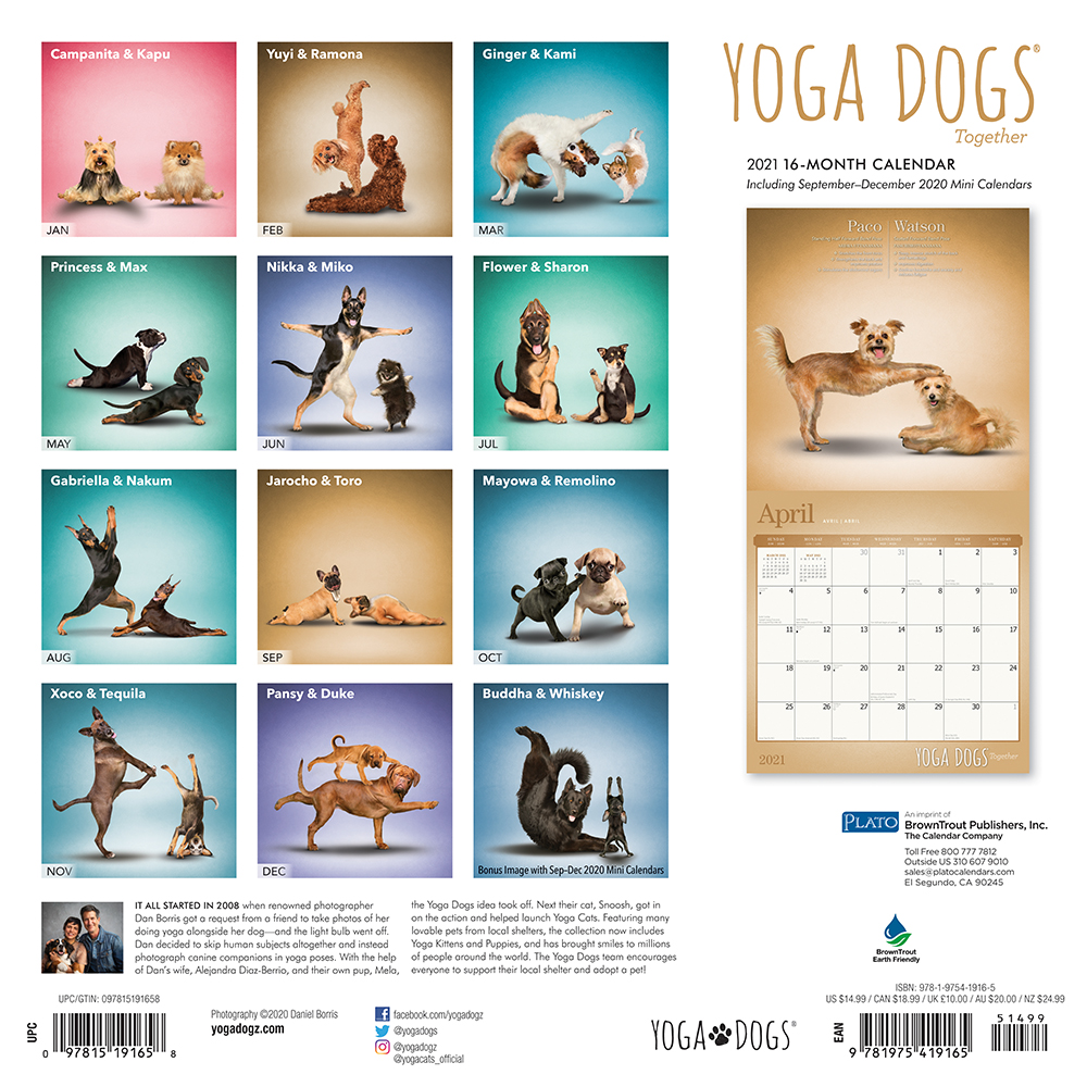 Yoga Dogs Together 2021 12 x 12 Inch Monthly Square Wall Calendar by Plato, Animals Humor Dog